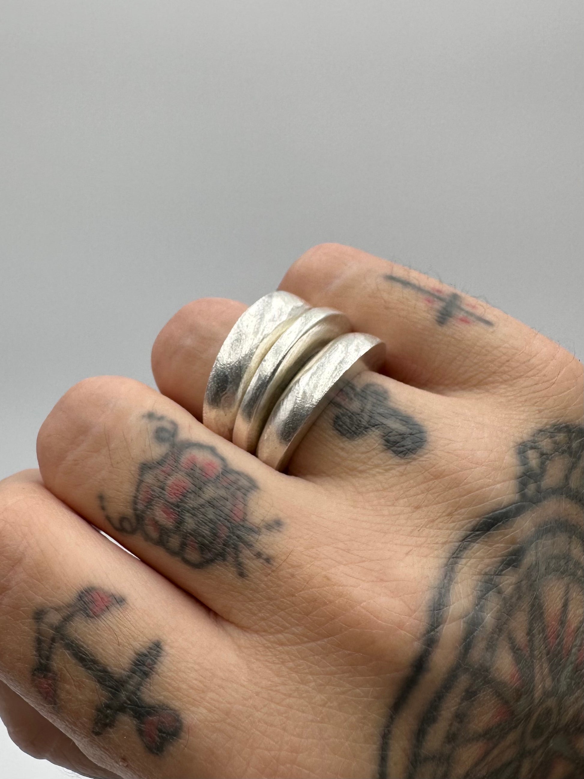 Tris di anelli in argento 925 interamente realizzati a mano .
